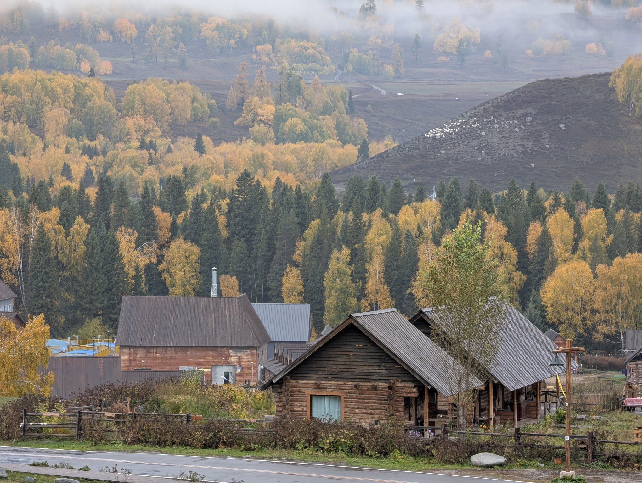 显然阳光才是北疆最好的滤镜,雨天就是暗沉一片。不过有一个好处就是到处弥漫着水雾,笼罩着白桦林煞是好看,四舍五入也算看到晨雾了。