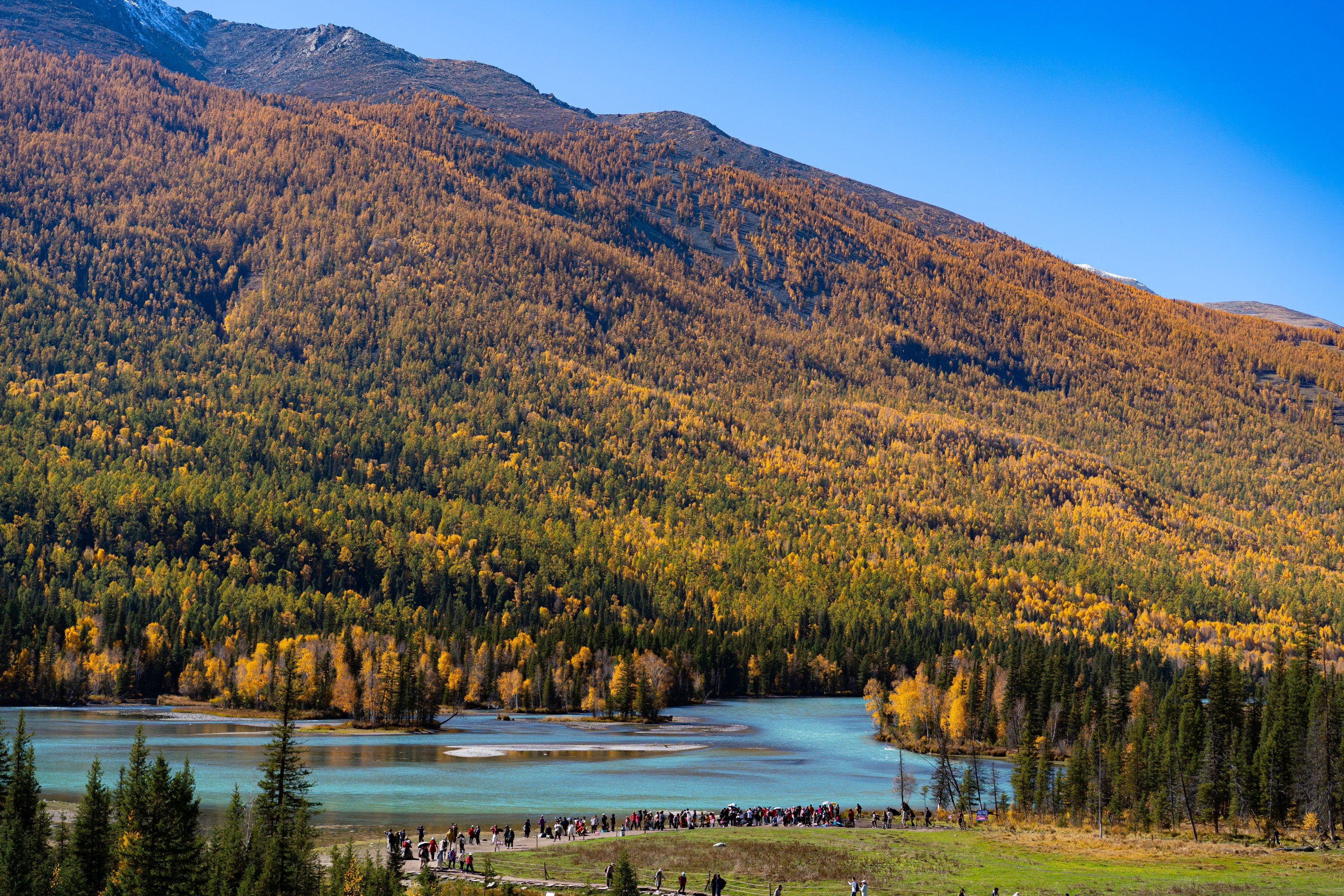 喀纳斯景区集冰川、湖泊、森林、草原等自然景观于一体,有”人间净土“的美誉。它位于阿尔泰山中段,地跨布尔津、哈巴河两县,总面积超过 10000 平方公里。这里不仅风光壮美,还拥有独特的图瓦人文化村落。