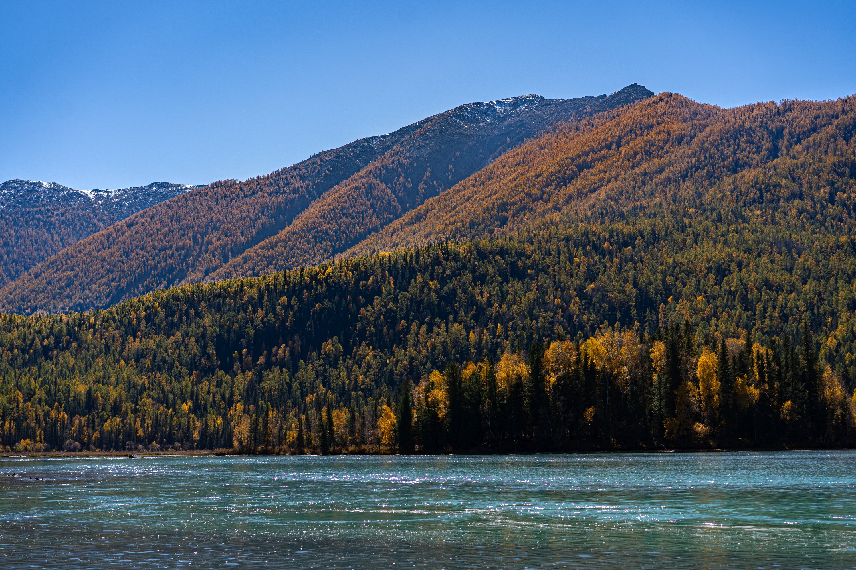 喀纳斯湖作为景区的核心,它是中国最深的冰碛堰塞湖,湖深 188.5 米。冰碛堰塞湖意思就是冰川退缩时的冰碛等沉积物阻塞了河道或冰川谷,拦截了冰川融水形成的天然湖泊。这里的冰川融水来自奎屯、友谊峰等山脉,水温也接近深海水温,人体难以承受。另外,湖水会随着季节和光线变化呈现出不同的颜色,被称为”变色湖”。其原因是由于矿物质含量和光照变化引起的,春夏湛蓝如镜,盛夏转绿,深秋泛金。湖的周边群山环抱,森林覆盖率超 95%,生长着西伯利亚冷杉、云杉等珍稀树种,构成了中国唯一的西伯利亚泰加林生态系统。此外,关于湖中”湖怪”的传说也广为流传,科学解释认为那其实是大型的哲罗鲑(俗称大红鱼)鱼群。