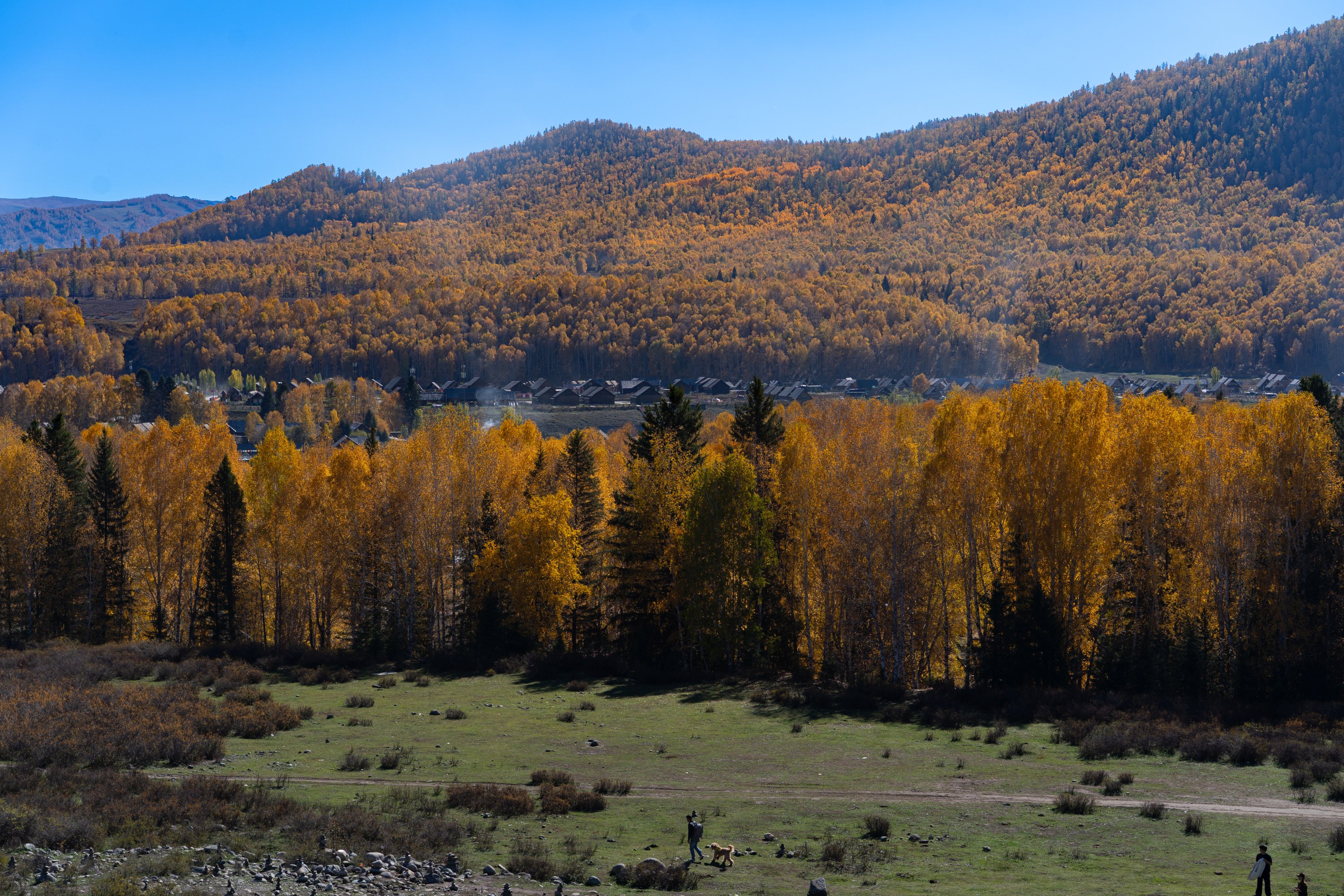 老路线去禾木村。今天想去美丽峰的,结果找村民一问,坐车每人 150,骑马每人 300,成功劝退。于是还是在哈登观景平台的这边游玩拍照。