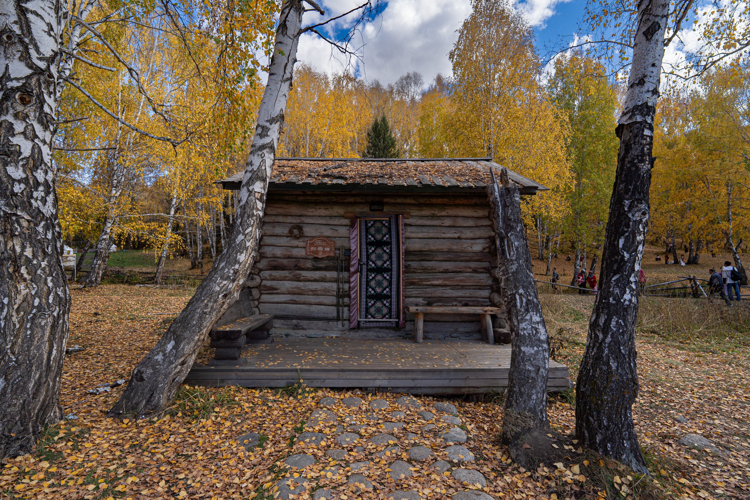 再往里就到了夫妻树。那是两棵并肩生长的树,一棵是白桦,一棵是松树。它们春夏一同碧绿,秋季则白桦变黄,松树依旧青翠,被视为美好爱情的象征,PS:白桦现在还没黄透。