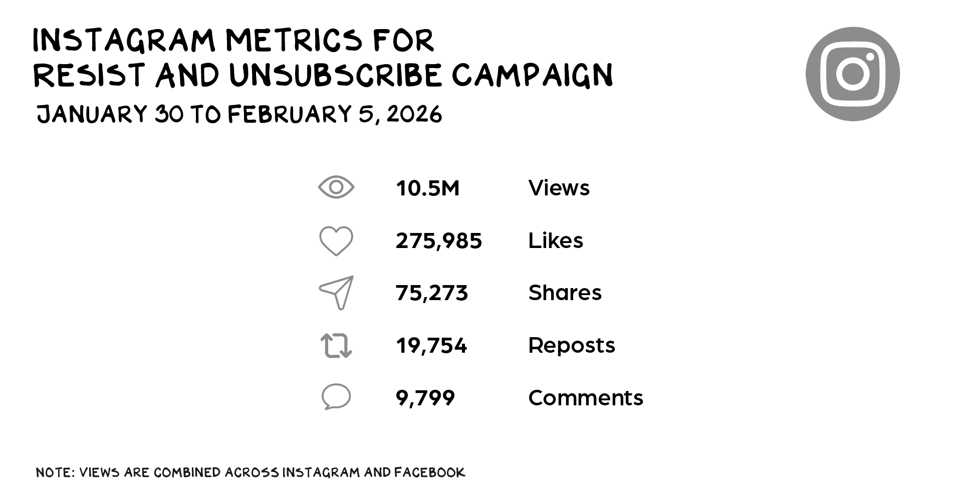 P.S. Resources to help you participate in our Resist and Unsubscribe campaign and maximize your impact can be found here.