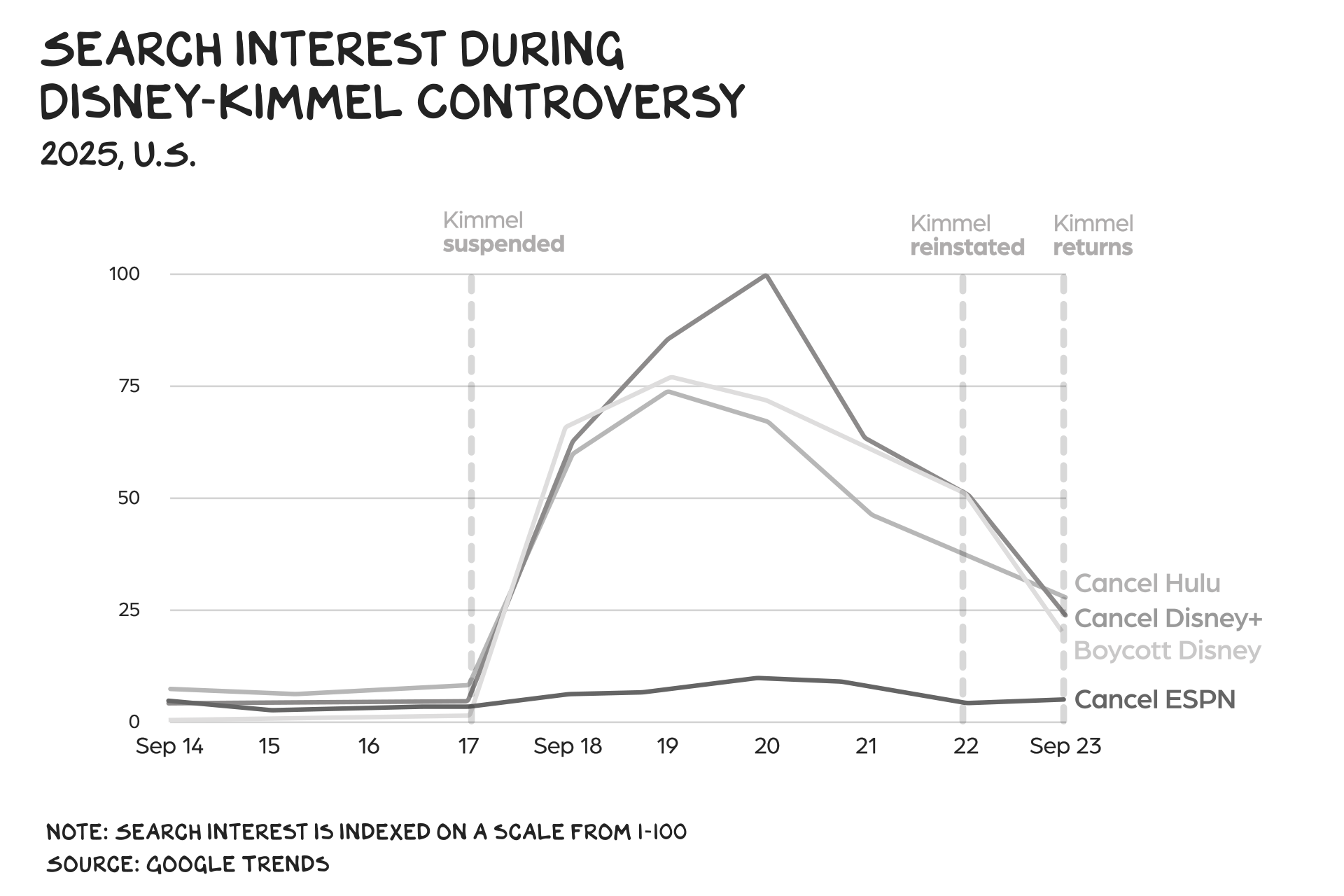For a recent example of what happens when consumers deploy their spending power against the jugular of authoritarianism, see Disney’s suspension and reinstatement of Jimmy Kimmel. In the end, it took fewer than 1% of the Mouse’s total streaming subscribers to accomplish what CEO Bob Iger couldn’t — stand up to an authoritarian. (Note: According to Erica Chenoweth, a political scientist and professor at Harvard who analyzed 323 nonviolent and violent mobilizations between 1900 and 2006, when at least 3.5% of a country’s population actively engages in a peaceful protest movement, it has always resulted in political change.)