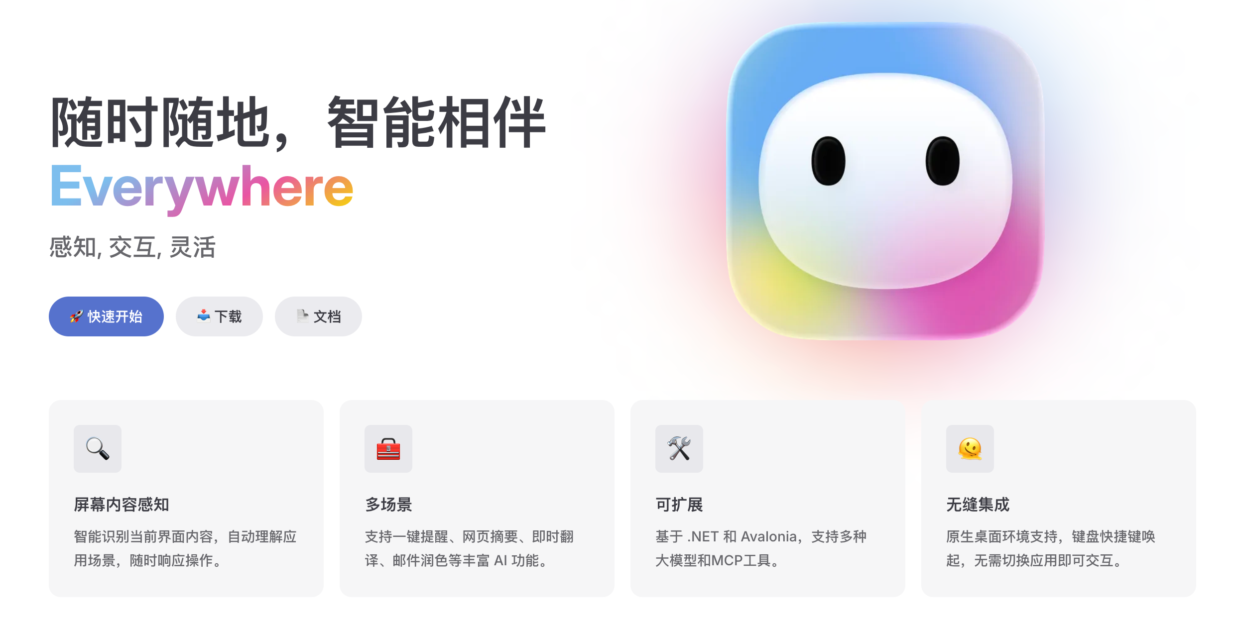 Everywhere 是一款具备情境感知能力的交互式 AI 助手,拥有简洁现代的用户界面和强大的集成功能。与传统 AI 工具不同,Everywhere 能即时感知并理解您屏幕上的任何内容。无需截图、复制或切换应用——只需按下快捷键,即可在当前位置获得所需帮助,实现无缝的 AI 助手支持。