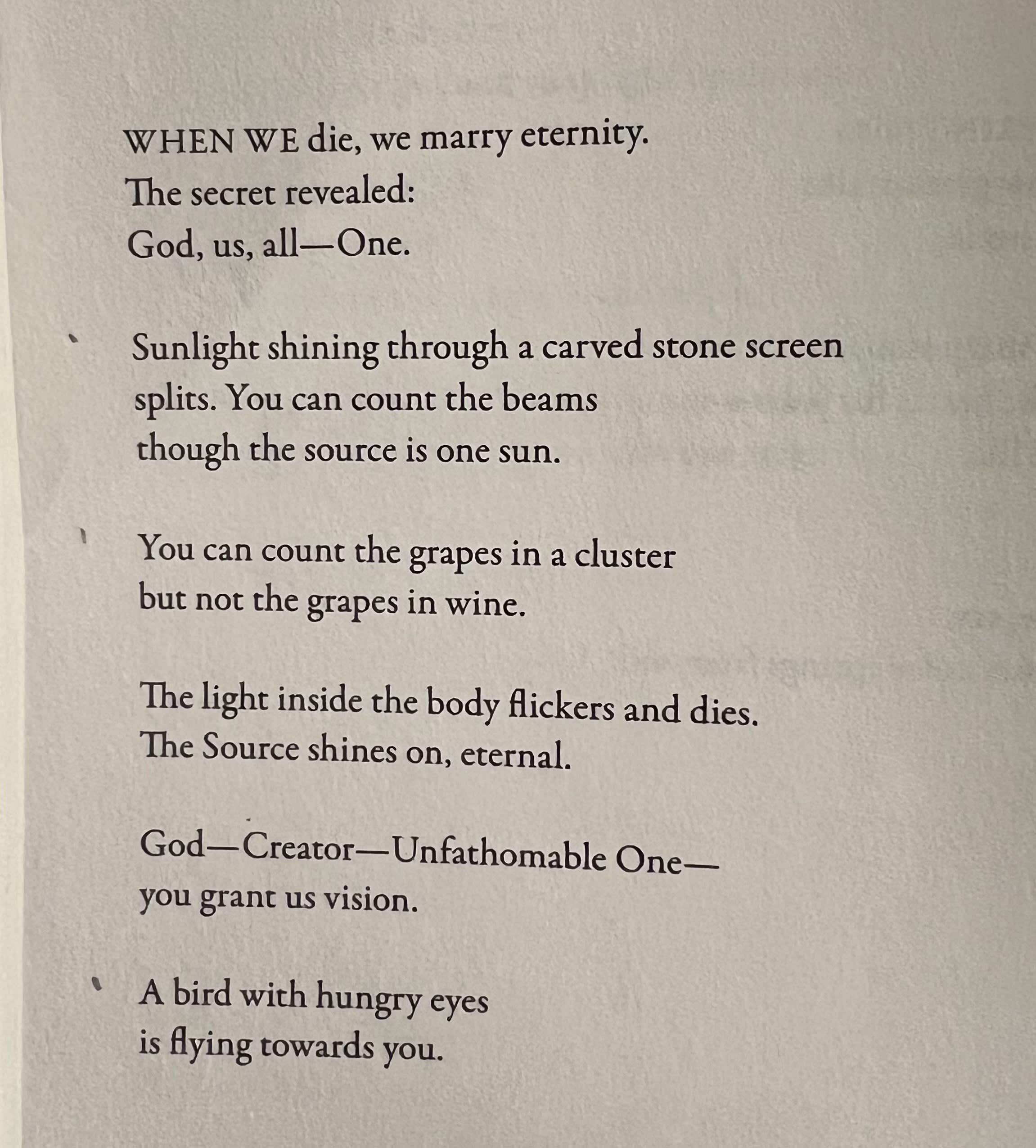 I know I cannot grasp the whole. The endings I sense are movements that lead to beginnings, cosmic exhalations, waves in a distant shape of mute perfection. I too must ride this breath, be this breath, while I am here.