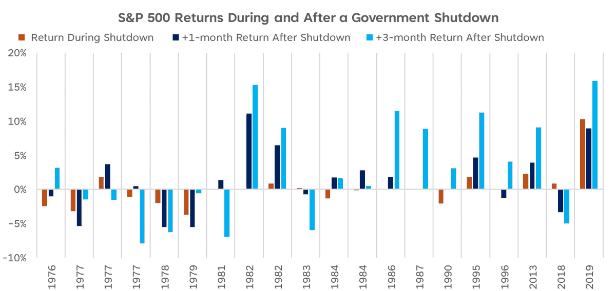 If we get the government shutdown behind us, you should expect stocks and bitcoin to go higher quickly. Opening Bell Daily’s Phil Rosen writes “The US has seen 21 shutdowns in the last 50 years and the S&P 500 has gained 1.2% one month later and 2.9% three months later on average. Stocks are almost always higher after a government shutdown.”