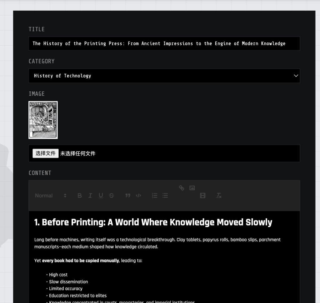 然后发布成功,我在后台发了几个文章,加了几个博物馆收藏,就正式公开这个网站了。