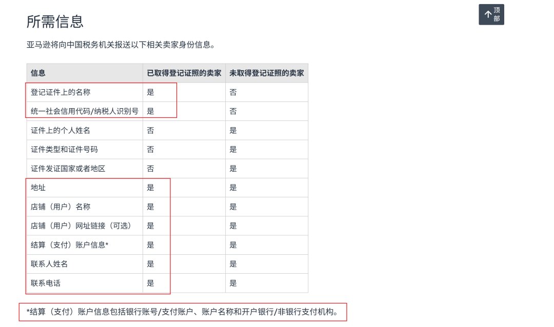 亚马逊将向中国税务机关报送以下相关卖家身份信息: