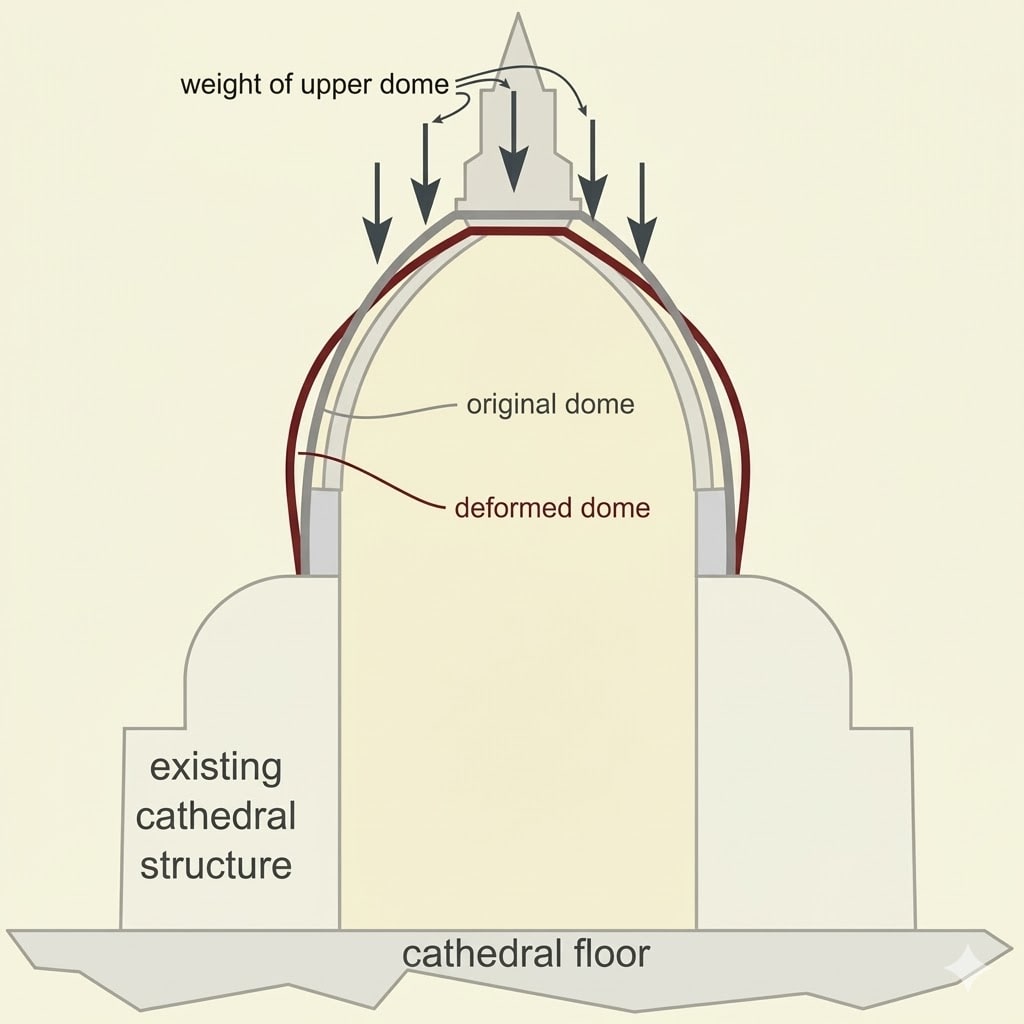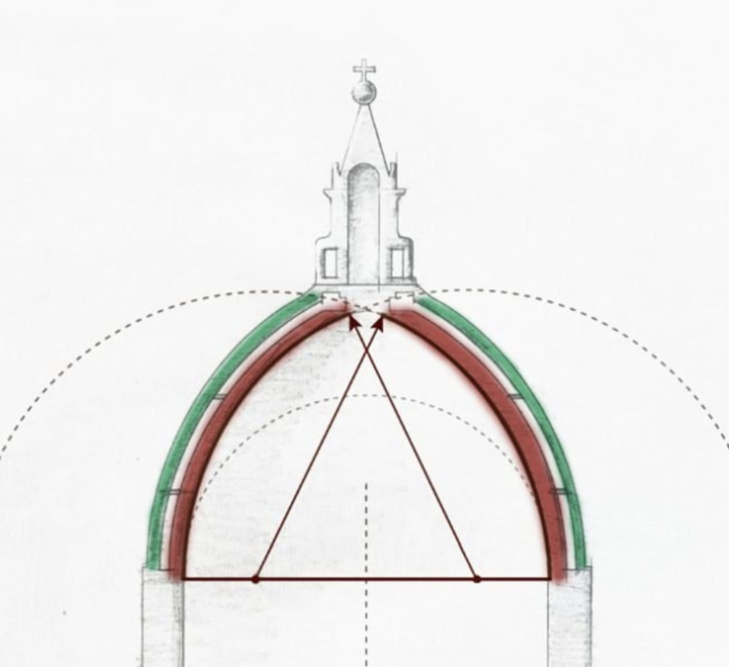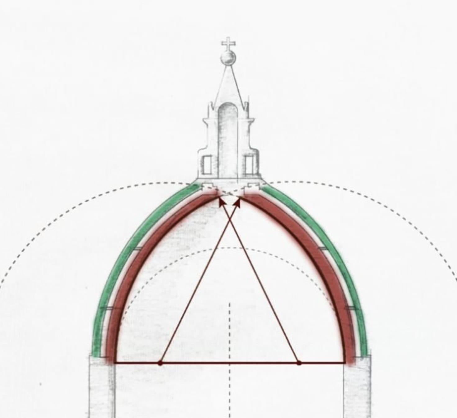 Brunelleschi needed a way to pull the top outward and push the bottom inward. He solved it with stone and wood rings around the dome!