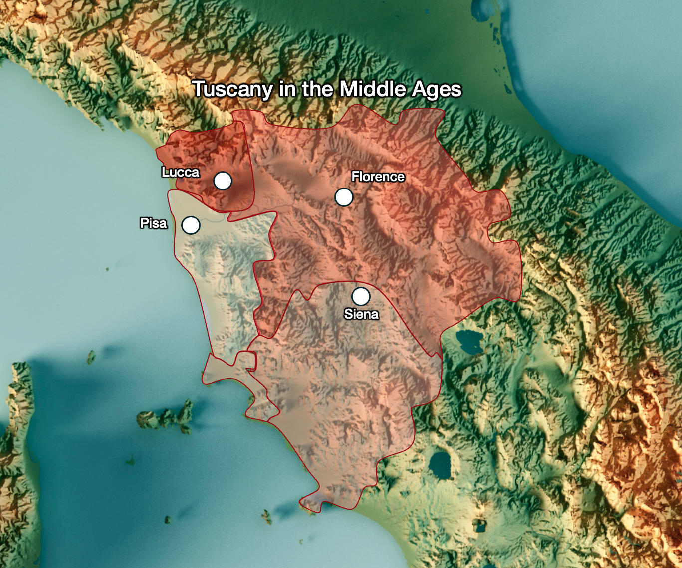 The region also contained many cities that had remained inhabited since Roman times, and Florence was one of the big, urbanized cities in the region