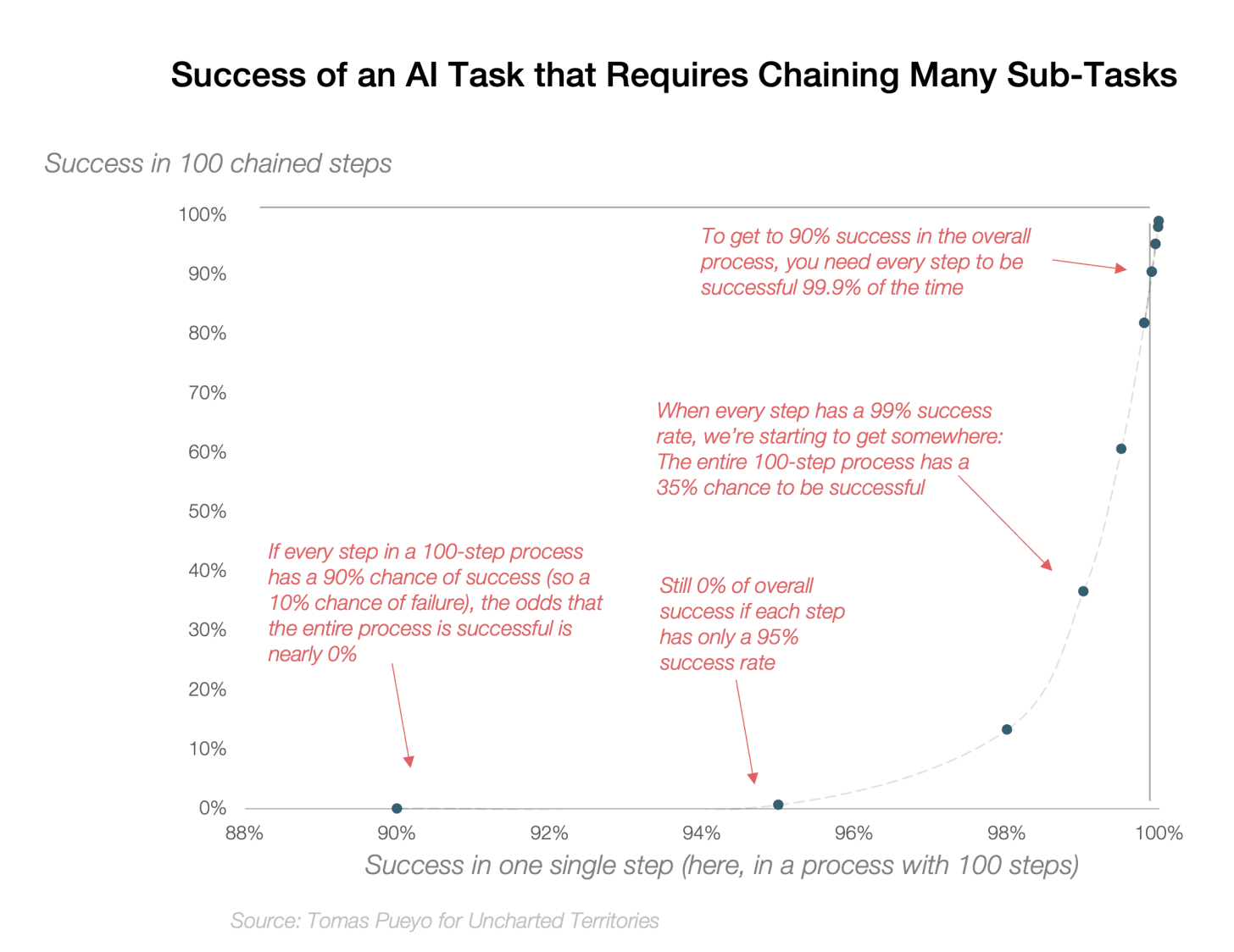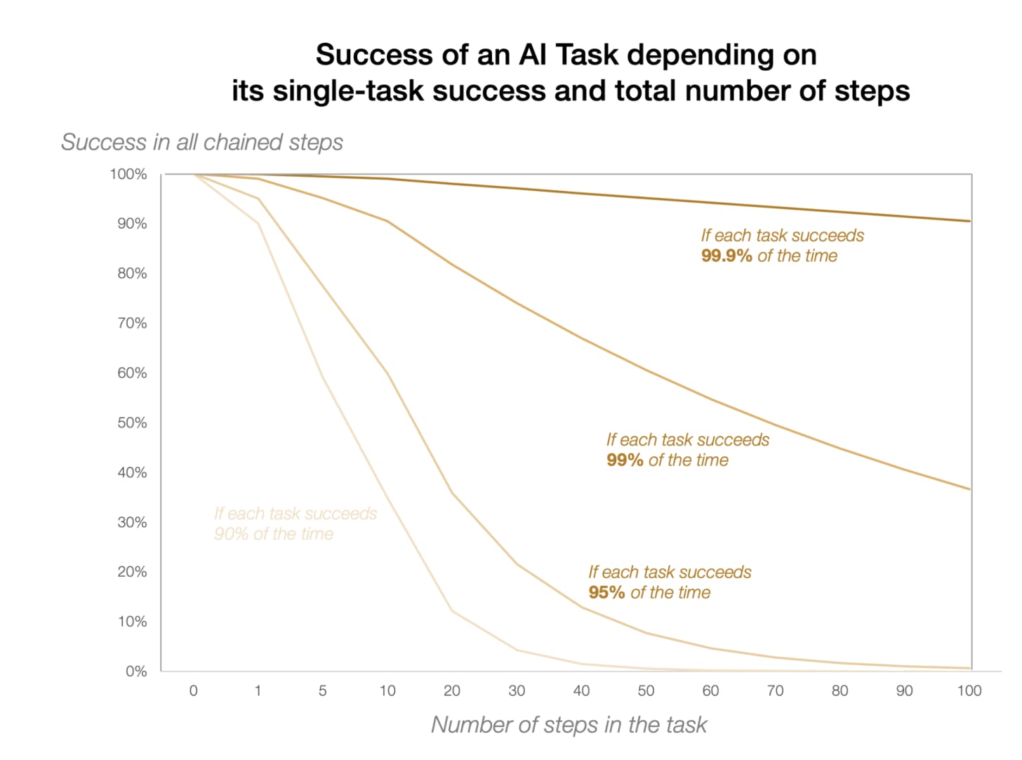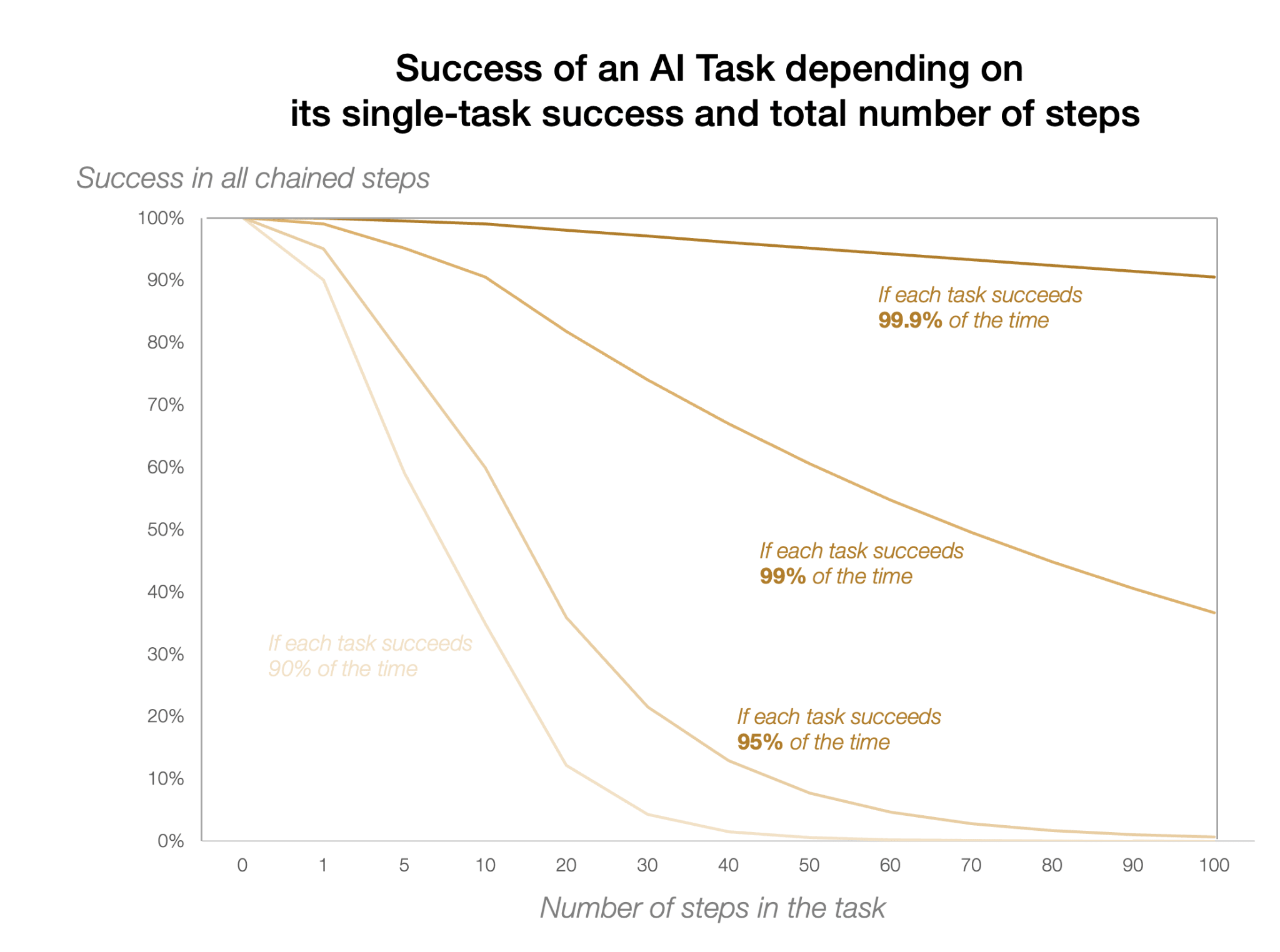 This is why there’s a pretty clear tradeoff between the success rate and the task length in real life: