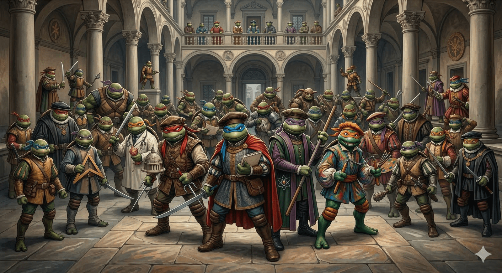 Other Florentines like Michelangelo, Raphael5, and Leonardo da Vinci traveled to Rome to form the ninja turtles squad study it.