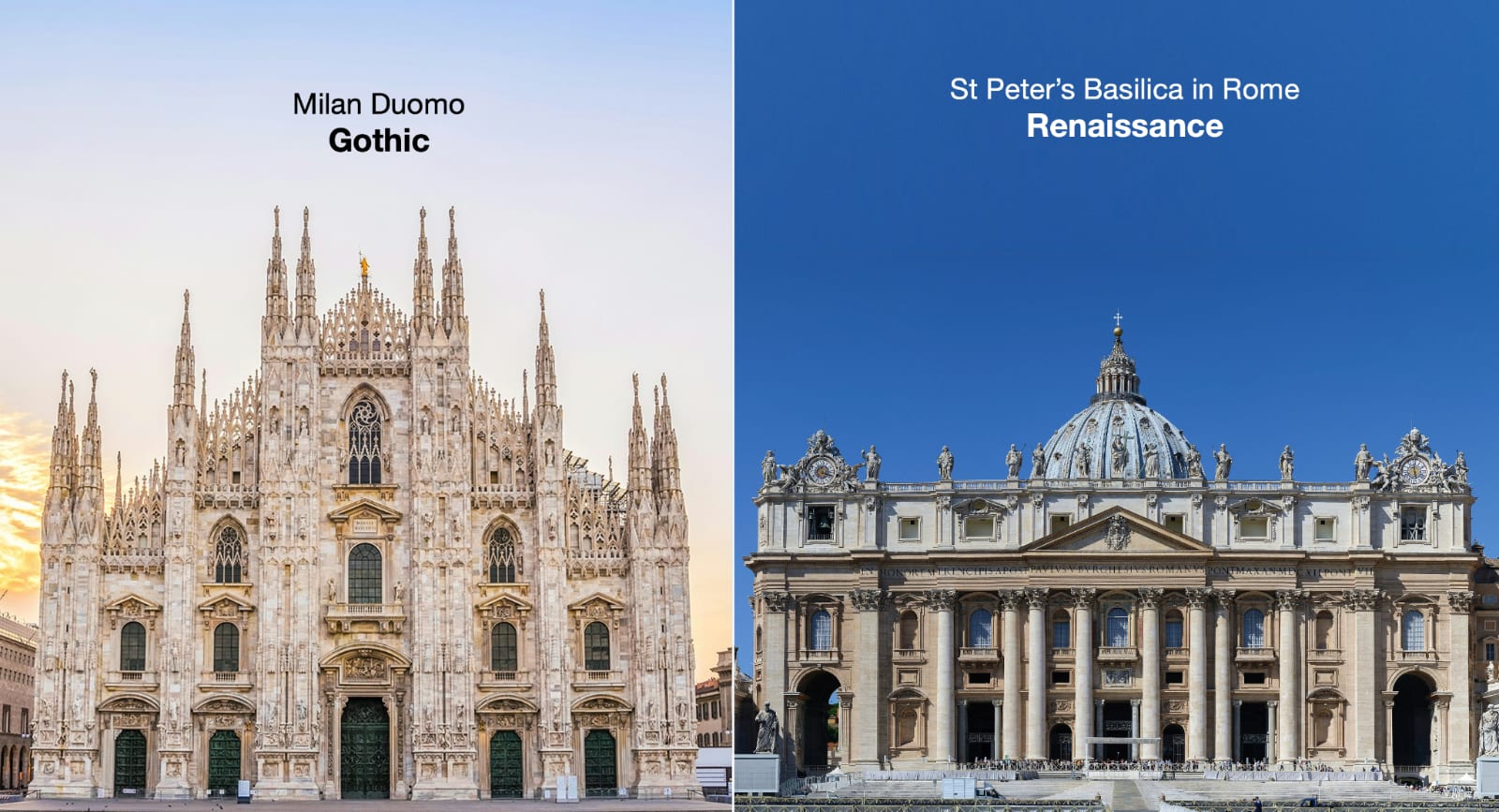 In the Renaissance, the idea was to go back to the wisdom of the more powerful ancient Roman Empire. Studying it, architects realized they followed some rules, and they decided to decode them and apply them. They decided that space should be graspable, measured, balanced, and ordered as a coherent whole. They did that by going back to columns, round arch, domes, volumes, horizontality, visual legibility, proportions, and a return to hard-coded classicism.