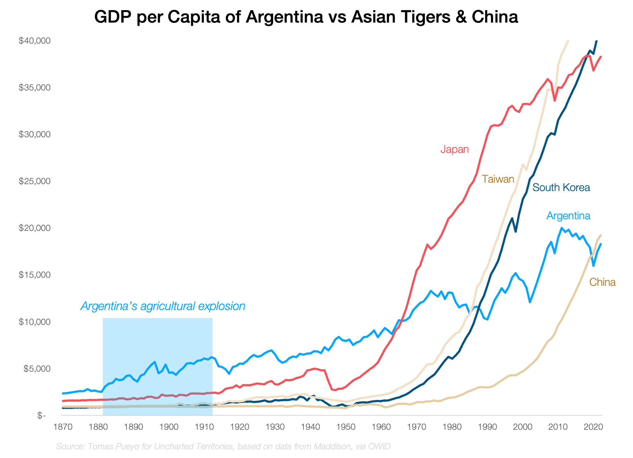 One way to put it: Geography is the hardware, our institutions are the software. When both work well, a country is unstoppable. With bad hardware but intelligent software, a country can go far. But it’s easy to waste good hardware with very bad software. This is what Argentina has done. Another way to put it: Geography is the chessboard: How you play on it determines your success, and Argentina hasn’t played very well. Why? This is what we will explore in the next article. Subscribe to read it!
