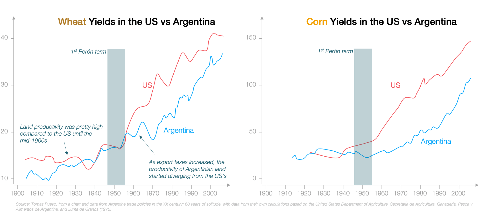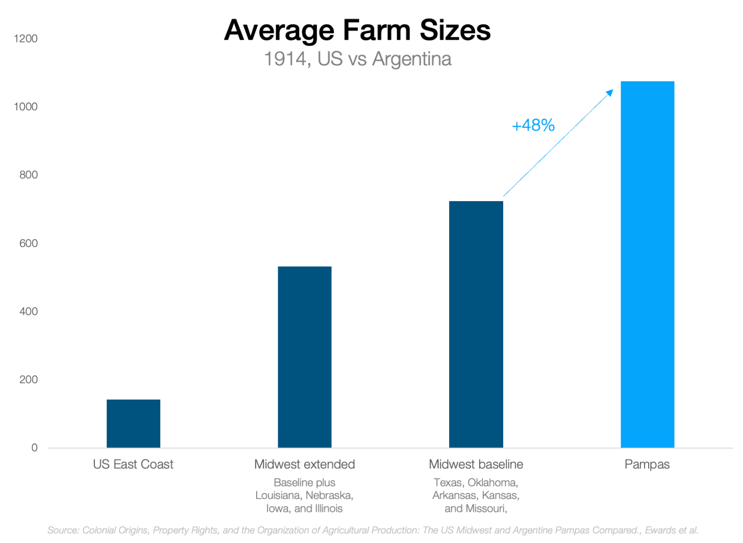 En otras palabras: Estados Unidos tiene las Grandes Llanuras, Argentina tiene las Pampas. Y con tierras y climas tan parecidos, ambos pueden producir y exportar cantidades desmesuradas de alimentos.