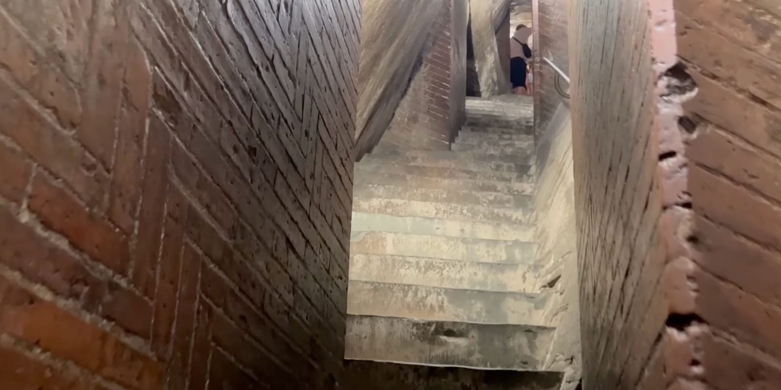 The other thing Brunelleschi had to figure out was how to build this thing without a wooden scaffolding inside (it would have required too much wood!). He solved that by building the entire structure ring by ring, using herringbone bricks, crossing the bricks so that they would support each other.