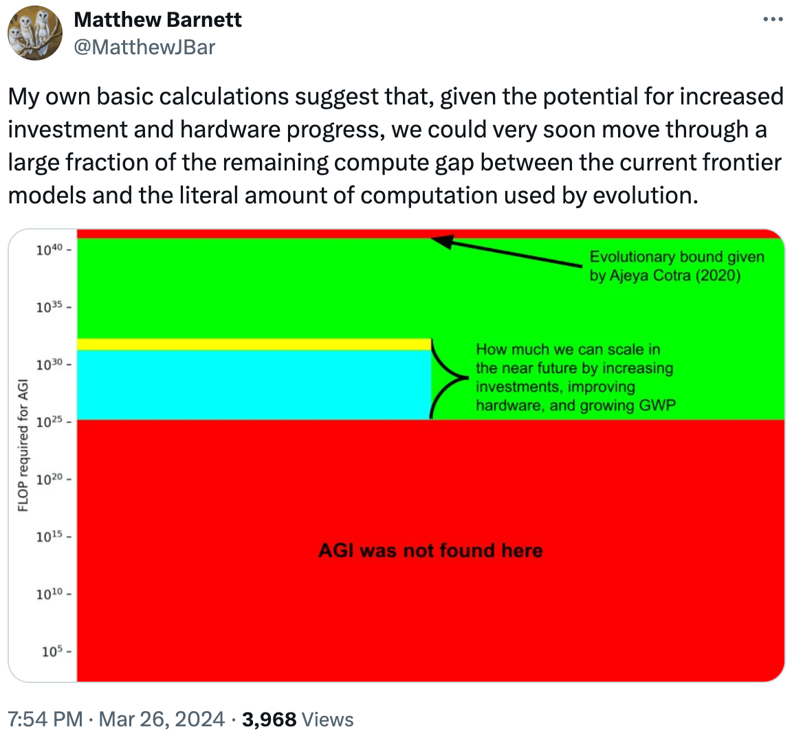 So the jump here would simply be: Let’s just throw more resources at these models and they’ll eventually get there. We don’t need magic, just more and more efficient resources.