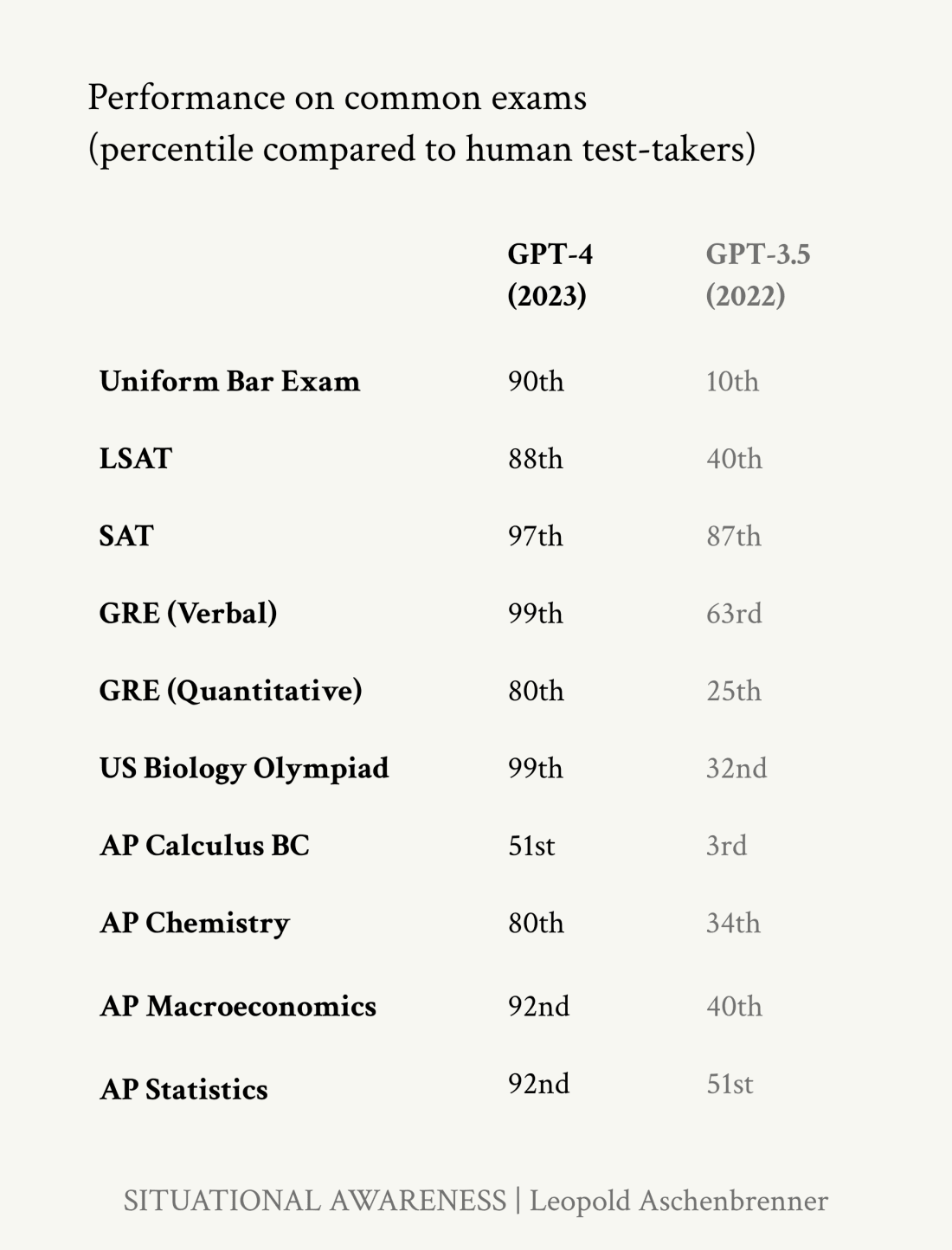 A key argument that Aschenbrenner makes to conclude that AGI will happen within the decade is because we’re going to increase our machines’ ability to think much faster now than in the future: