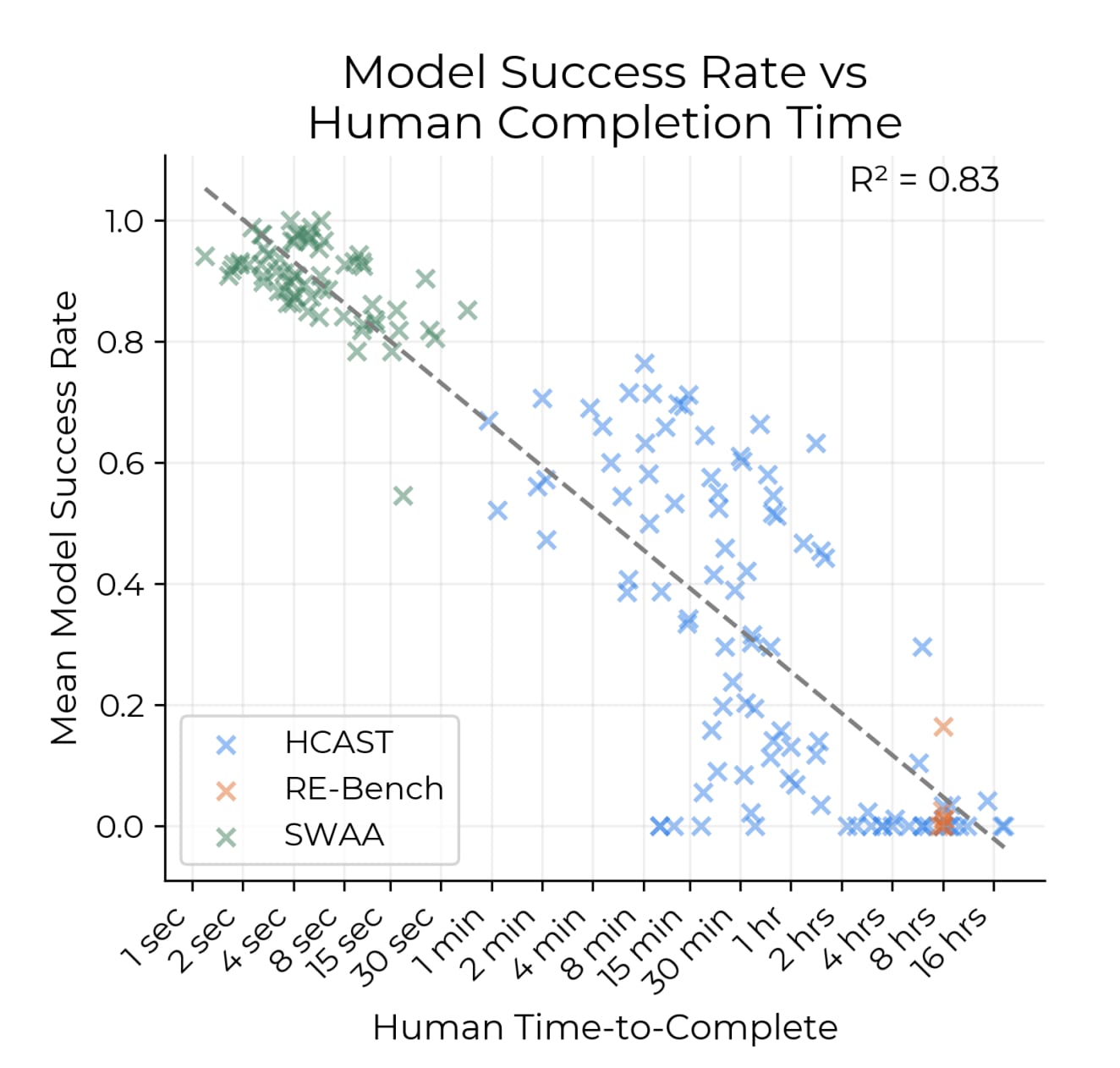 Every few months, AIs can do longer and longer human tasks at the same success rate.