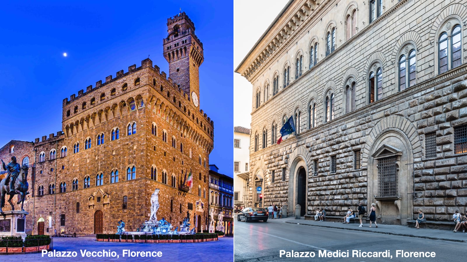 Renaissance really shines outside of churches for me. Before, it seems like most architecture of beauty was concentrated into churches, but now it appears everywhere. Compare Florence’s Palazzo Vecchio, built around 1300 just before the Renaissance, with the Medici-Riccardi, built around 1450, during the explosion of Renaissance in Florence: