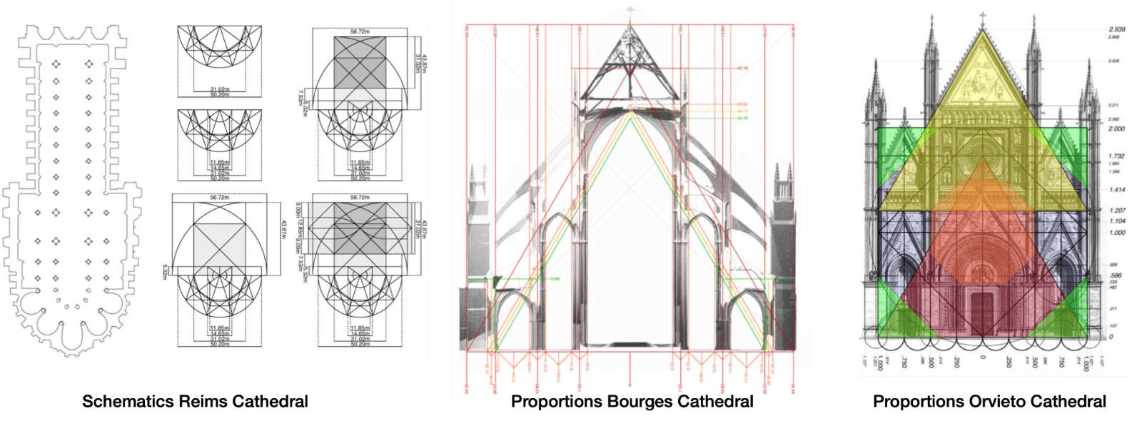 Between De Architectura and visits to Rome, architects and artists started noticing that Roman buildings used modular, proportional systems and strict rules of geometry: harmonious numerical ratios (1:1, 1:2, 2:3, etc.), room height related to width, temple column spacing based on column diameter… These ideas gave Renaissance architects something medieval builders lacked: a theoretical mathematical framework for beauty.