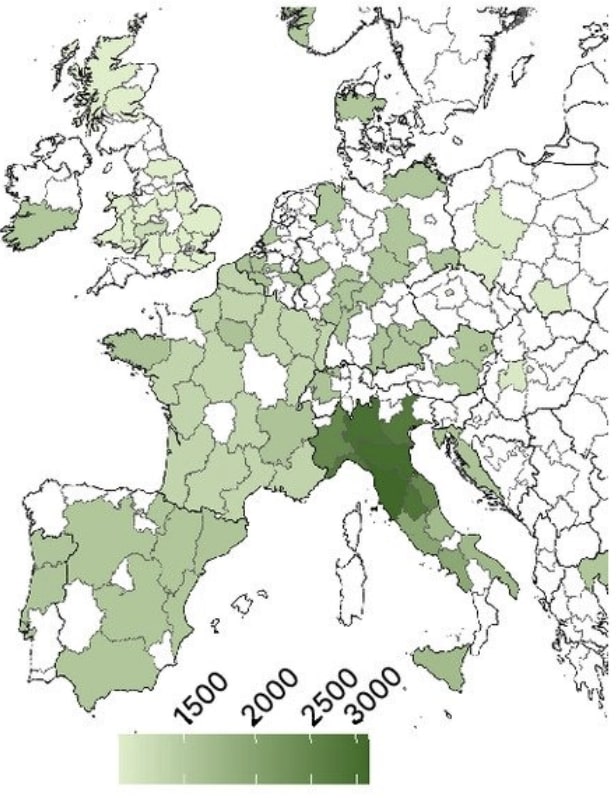 We already explained why: They were already quite populated in Roman times, and they have some of the best plains in the Mediterranean, especially in the Po Valley.