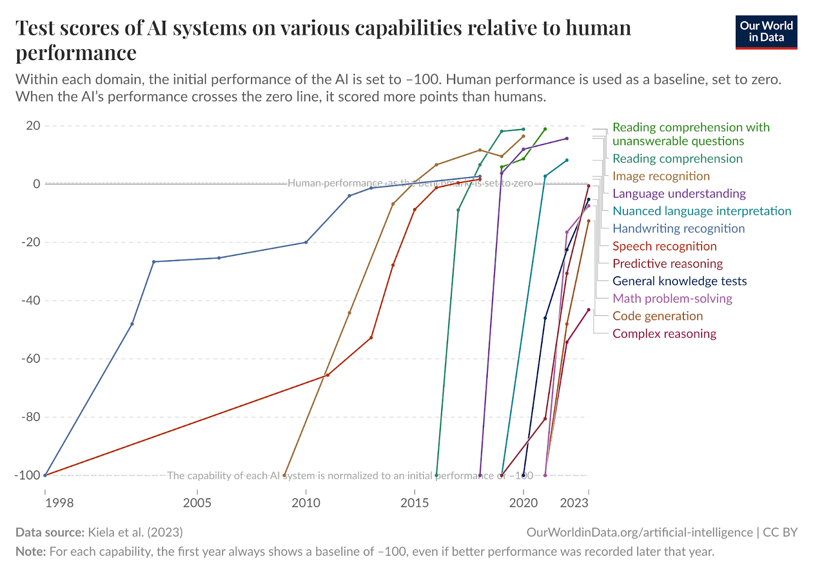 AI expertise is growing inexorably. Threshold after threshold, discipline after discipline, it masters it, and then beats humans at it.