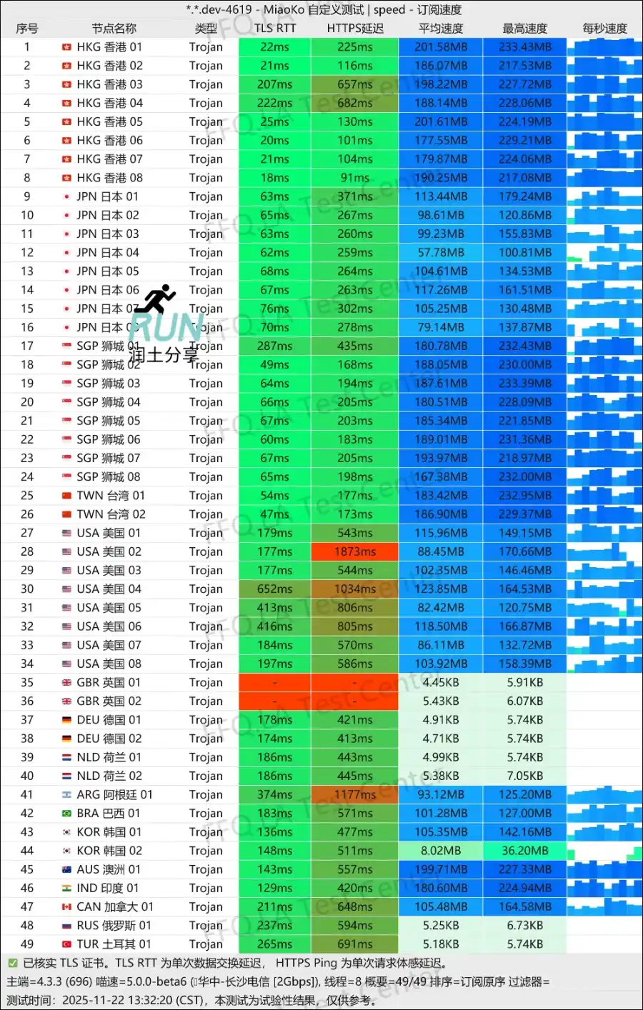单线程测速,更贴合日常使用。常用五大地区节点多数表现尚可,多数节点带宽冗余充足。节点复用较多,单入口,如果出现单点故障一挂就全挂,抗风险能力可能一般。