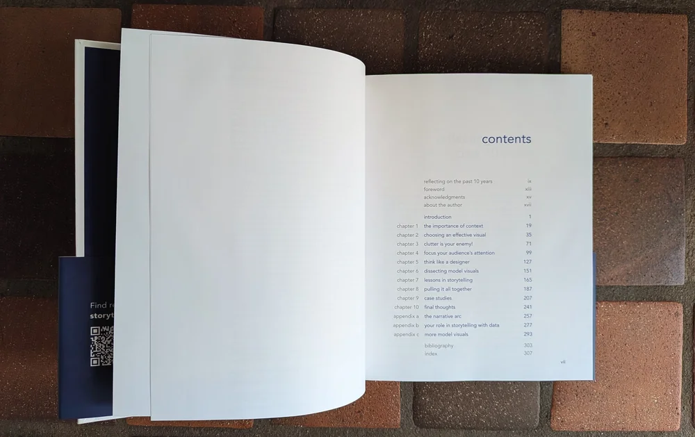 Earlier this year, when my publisher suggested creating a special anniversary edition, I jumped at the opportunity. I reread storytelling with data for the first time in years and was happy to find that its foundational lessons still hold true today (perhaps even more so in this age of AI). While the core content remains unchanged, I added a new foreword and three appendices capturing key insights from the past decade. The example graphs have been refreshed with current data. The design has been elevated: a crisp white linen hardcover stamped with magnesium ink, coordinating endpapers, and some fun surprises that I’m extremely excited to share with you.